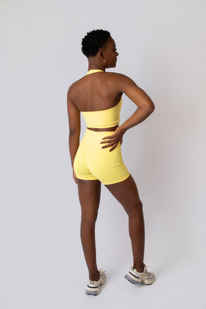 A combinação do top com o shorts proporciona ajuste estável e liberdade para diferentes tipos de atividade, mantendo o visual leve e funcional.